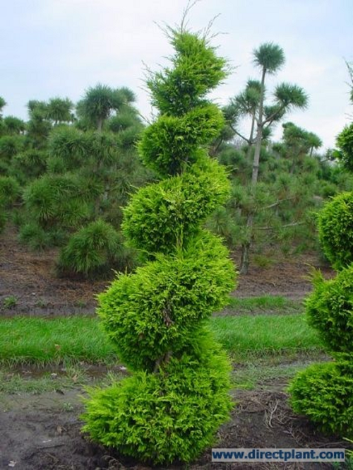 Een Nederlandse selectie uit 1975; is beperkt in cultuur. Een fraaie, echt gele species, die kleiner blijft dan de soort. De kroonvorm is smal piramidaal tot kegelvormig. Een aanrader!