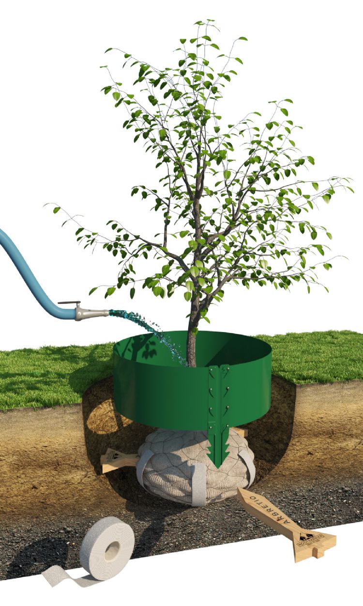 De Rootbarrier Watertapes (welke is genomineerd voor de Gouden Gieter) is een 100% biologisch afbreekbare tape wat ca. 40 liter water per m2 opneemt, voegt zich op natuurlijke wijze om de wortel en vervult de noodzakelijke "sponsfunctie" die met name jonge wortels nodig hebben. Ontwikkeld om uitdroging van de kluit tegen te gaan en dat de boom verzekerd is van een optimaal vochtbalans in de grond, ook tijdens extreme droogte. Ook goed te combineren met de RootBarrier Gietrand (die het afvloeien van water voorkomt).