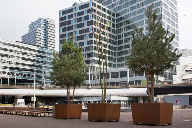 Met de verbouwing van het Centraal Station is ook het Anna van Buerenplein opnieuw ingericht. Het plein is veranderd in een fijne, groene ontmoetingsplek. Dit door middel van 17 grote, corten stalen bakken die toch een goede groeiplaats kunnen bieden. Hoe dat kan? Door een speciaal waterbergingssysteem in de bak zelf, een goede isolatie en een speciaal grondmengsel. Daarnaast zijn er boomsoorten gekozen die tegen een stootje kunnen.