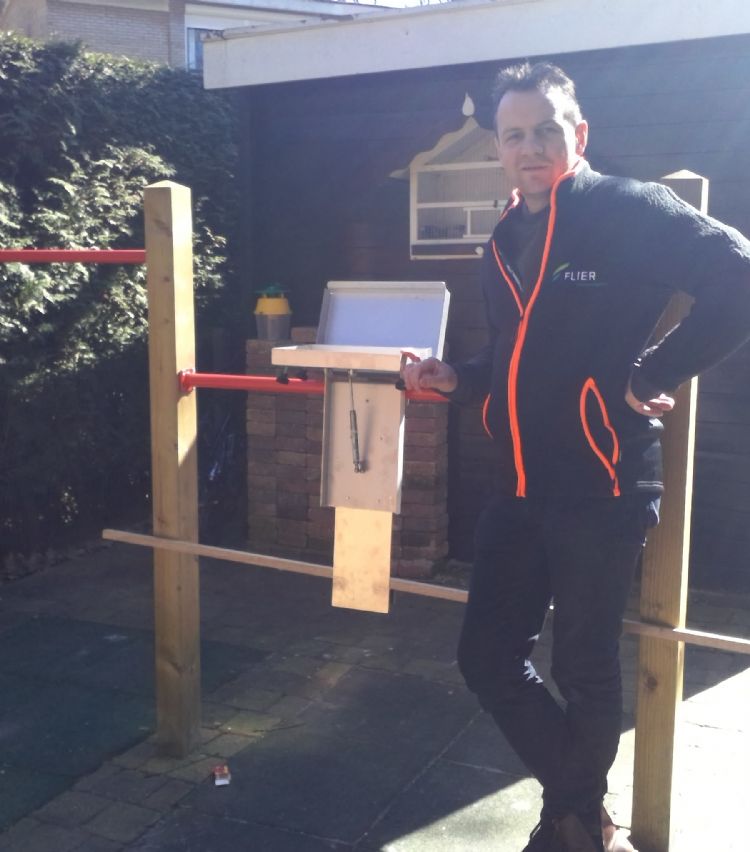 Daar kwam uiteindelijk een val- en weerbestendige tablethouder uit. 'Het is een platte bak, een soort kist, met vier klemmetjes eraan', legt Flier uit. 'De deksel van de houder is waterdicht, dus als het regent, is er geen schade. Daaronder zit een grasveer die de tablethouder omhoog duwt als de tablet geraadpleegd moet worden. Met deze innovatieve houder ga je efficiënt met je productieve tijd om.'