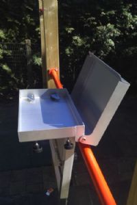 'Het idee is in mijn bovenkamer begonnen', gaat Flier verder. 'Er is eerst een schets gemaakt. Een medewerker heeft daarmee geholpen. Daarna ga je het resultaat testen, dan weer wat anders verzinnen, enzovoort, om het product te finetunen. Alles bij elkaar heeft het wel een poosje geduurd voor het eindresultaat er was. Daar ben ik zeer tevreden over, en de rest van de medewerkers ook. Tijd is hier de grote winnaar. We hebben nu tien stuks. Op ieder bestek waar onze jongens lopen, wordt gebruikgemaakt van de tablethouder. Je bevestigt de houder aan de rand van de bak van de hoogwerker. Hij is klein, smal en neemt nauwelijks ruimte in. Wij produceren deze tablethouder en raden onze collega-bedrijven aan hem ook aan te schaffen om tijdwinst te boeken.'