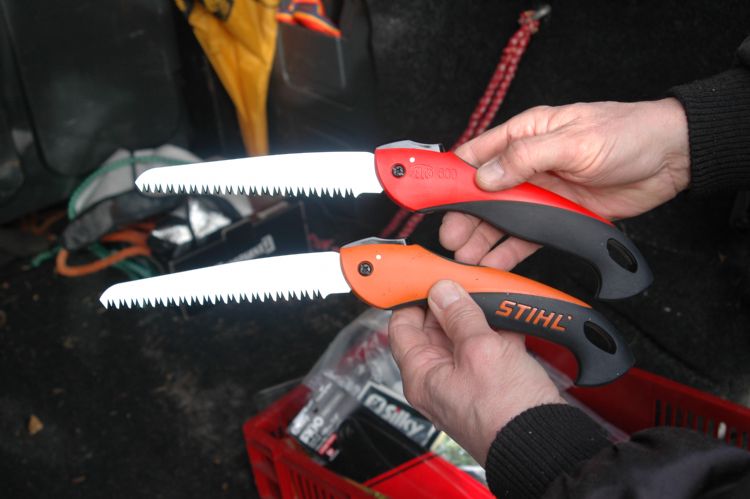 Maar hoe bevallen die zaagjes? Julian Joosten werkt als hovenier veel met Felco-snoeischaren en is lovend over het Felco-zaagje dat hij in handen heeft: 'Hij zaagt als een tierelier, is klein en handzaam.' Smaken verschillen: een collega-teamlid beoordeelt het blad juist als wiebelig. Maar gecorrigeerd door een ander teamlid, dat juist in een dik, nat stammetje zaagt waarin de sapstroom al op gang is gekomen, relativeert hij: 'Zo'n klein blad is misschien beter om dunne twijgen mee te zagen.' Het Felco-blad lijkt dunner en is dat bij nameting ook! Heggenvlechter Henk is gehecht aan zijn eigen zaagje, dat hij in een holster aan zijn werkbroek draagt. Hij geeft als commentaar bij het Silky-zaagje dat hij uitprobeert: 'De knobbel, de haak aan het handvat is te dik. Het is heel lastig om het ingeklapte zaagje in de langwerpige duimstokzak van je werkbroek te stoppen.'