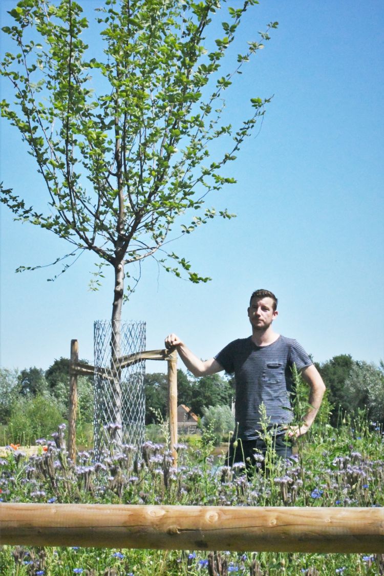 De thermometer komt al een paar dagen ruim boven de 25 graden en de zon schroeit boven de kurkdroge landerijen rond Reek, gemeente Landerd, even ten zuidoosten van Oss. De afgelopen drie maanden heeft het hier nauwelijks geregend. Bomenexpert Roel Vermeulen (38) graaft met beide handen in de laag houtsnippers die hij rondom een jonge fladderiep heeft laten aanbrengen. 'Kijk, dit is mooi vochtig gebleven!' Vocht is cruciaal in deze droge periode, zeker voor deze polsdikke iep die hij heeft laten planten op het landgoed van Harrie van Casteren, een voormalige melkveehouder. Samen met compagnon Koen van Hout van adviesbureau Orbis wil Vermeulen karakteristieke bomen terugbrengen in het Brabantse landschap. Het gaat om bomen die volledig kunnen uitgroeien en dan een markering vormen voor iedereen die erlangs komt. Veel van die iconische alleenstaande bomen zijn in de afgelopen decennia gesneuveld en verdwenen. 'Vroeger werden dergelijke bomen gebruikt om de grens van een perceel te markeren. Een grenssteen kun je stiekem verplaatsen, maar een boom blijft staan', glimlacht hij. 'Maar boeren zijn niet meer zo dol op bomen; er is er niet één die zich voor ons project heeft aangemeld.' De fladderiep aan de Koperstraat in Reek is geplant onder de gunstigste omstandigheden. De bodem waarin hij staat, is vermengd met vijf kubieke meter compost en afgedekt met een dikke laag houtsnippers, anderhalve kuub in totaal. 'De compost verbetert de structuur en houdt vocht vast. We hebben zelfs in het plantgat nog gaten geboord van ruim een meter diep en die gevuld met compost, zodat de wortels het grondwater makkelijker kunnen bereiken. De houtsnippers - mulch - gaan verdamping tegen en geven nog jarenlang voedingsstoffen af, waar de boom van profiteert.' Ook zijn schimmels en wormen toegevoegd aan de bodem, zodat die in topconditie blijft en de boom uit kan groeien tot een mooi volwassen exemplaar dat zeker honderd jaar of een veelvoud daarvan vooruit kan. Rondom de stam geven korenbloemen, klaprozen en slangenkruid kleur aan het afgerasterde stuk en zoemen bijen en hommels. Van Casteren besloot zijn melkveebedrijf om te zetten in een 'landgoedje met natuur', omdat zijn drie dochters het bedrijf niet wilden voortzetten. In ruil daarvoor laat hij wandelaars toe en mocht hij een paar huizen bouwen. 'De fladderiep staat op een mooie plek', vindt hij, 'een mooie aankleding van het terrein.' Zijn broer maakt nog een roestvrijstalen plaatje met de naam van de boom op. 'Iedereen vraagt daar altijd naar.' OpaVermeulen is al sinds zijn jeugd gek op groen. Hij hielp als schooljongen al mee op de bomen- en rozenkwekerij van zijn opa en deed daar zijn passie op. Nu werkt hij als zelfstandig adviseur en bomentaxateur en hij heeft een manier bedacht om ervoor te zorgen dat volgende generaties kunnen genieten van karakteristieke grote bomen die, ook al staan ze alleen, het landschap sieren.Bomen planten is één ding, maar ze moeten ook goed aanslaan en tot in lengte van dagen blijven staan, zo is de bedoeling. Daarom zoekt hij samen met Orbis mensen die grond beschikbaar willen stellen voor een boom met toekomst. Verder hoeven ze niets te doen, de boom kost ze zelfs niets. De drieduizend euro die ermee gemoeid is, wordt gesponsord of gesubsidieerd. Vermeulen bekijkt of de plaats die ze aanbieden voldoet aan de eisen. 'De boom moet zichtbaar zijn vanaf de openbare weg en er moet rondom twintig tot vijfentwintig meter vrij zijn, zodat hij zich echt goed kan ontwikkelen. We hebben er in de gemeente Landerd al elf geplant en de twaalfde volgt in november.' Woordvoerder Femke van den Berge van Landerd: 'We zien de druk op de openbare ruimte toenemen door landbouw en woningbouw, waardoor bomen niet meer optimaal kunnen uitgroeien. Toch is dat belangrijk voor het landschap en de duurzaamheid. Deze bomen hebben een intrinsieke waarde en mensen koesteren herinneringen die met zo'n monumentale boom samenhangen. Daarom steunen we het project.'