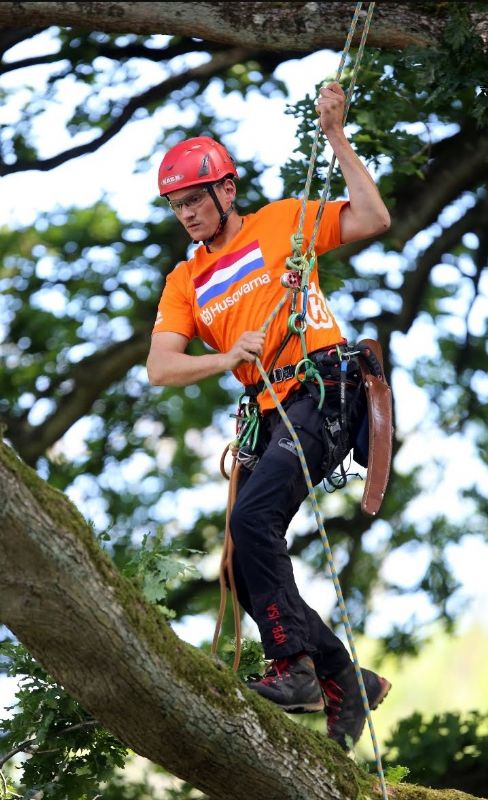 | Verbeek tijdens het NK Boomklimmen 2019 |