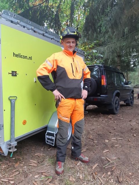 De opleiding tot boomtechnisch adviseur is geen hbo, dus moest Verbeek eerst een uitgebreid assessment door waarmee werd beoordeeld of hij een hbo-werk- en -denkniveau heeft. Verbeek: 'Na de goedkeuring kon ik de lerarenopleiding doen. Dat doe ik bij Aeres Hogeschool in Wageningen, de groendocentenopleiding. Het is een deeltijdopleiding van anderhalf jaar. Omdat ik de vakinhoudelijke kennis over boomverzorging en klimmen al heb, hoef ik alleen te leren hoe ik die kennis moet overbrengen. Ik probeer in april 2021 af te studeren. Door corona heb ik een behoorlijke vertraging opgelopen. Ik kon zelf niet werken en ook niet naar school. Nu, in september, zijn we weer gestart.' Hij vervolgt: 'Als je zelf gestart bent met je eigen opleiding, mag je werken als docent. Ik had er nog nooit over nagedacht, lesgeven, maar toen ik de vacature bij Helicon zag, leek me dat een mooie kans. Ik wist natuurlijk dat ik geen lesbevoegdheid had, maar ja, wie niet waagt, die niet wint.'
