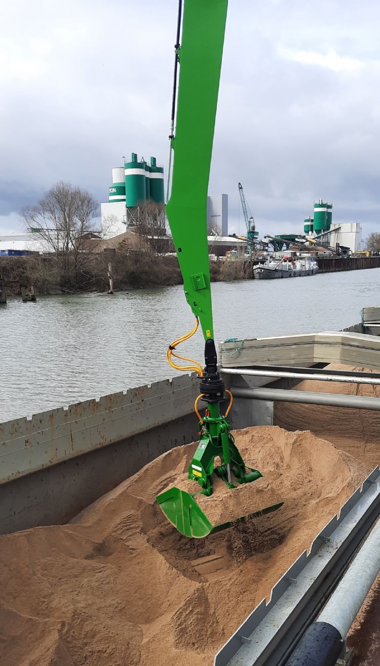 Groeneveldt en Sterk vertellen ook over een nieuw, lichter type grijper dat ze hebben ontwikkeld voor op- en overslag, vooral om zand te lossen. Deze grijper heeft minder last van slijtage en heeft als gevolg van het lagere gewicht een lager brandstofverbruik. 'We waren altijd al actief op deze gebieden, maar leggen er nu meer focus op. Daardoor groeien we ook in deze segmenten', aldus Groeneveldt.