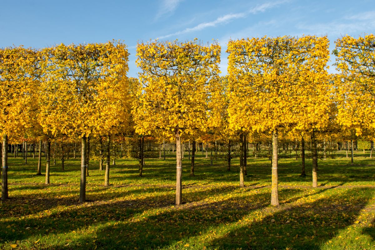 Boomkwekerij Ebben heeft Parrotia persica ook als haagvorm op stam op de kwekerij staan. Hij heeft dezelfde voordelen als de hoogstambijenkorf, alleen een andere vorm.