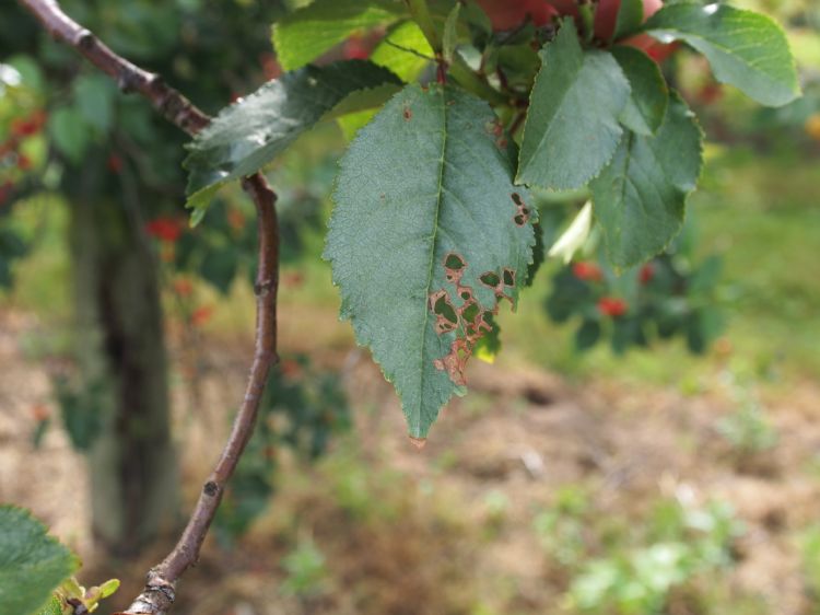 | Vraatschade van eerste generatie kastanjemineermotlarven |