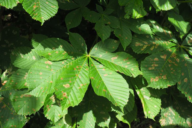 De paardenkastanje had dit voorjaar volop kans om zijn prachtige bloesem lang te laten zien. Het zijn echter larven van de eerste generatie die nu zorgen voor vlekjes op de bladeren. Omdat de eerste eitjes afgezet zijn door vleugelloze vrouwtjes die overwinteren in het afgevallen blad en schorsplaten, zijn de eerste aantastingen in de lage binnenkroon en op het eventueel aanwezige stamschot te vinden.