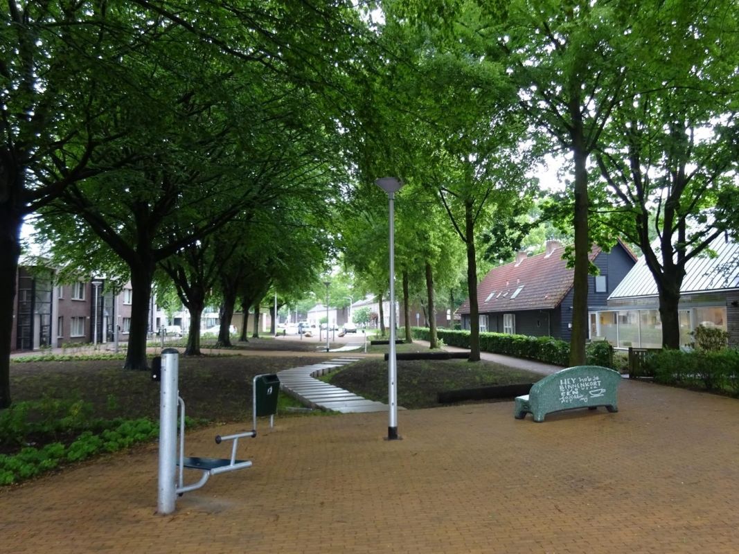 Naast het aangenomen initiatiefvoorstel mikt de gemeente op de aanplant van meer groen. Zo streeft ze ernaar om voor elke inwoner een groene koelteplek te realiseren op maximaal 300 meter afstand. Ook worden op dit moment 45 straten in de binnenstad vergroend door de aanplant van bomen en heesters, die er op termijn voor moeten zorgen dat 30 procent van de wandelpaden in het centrum beschaduwd is. Tijdens onze wandeling is deze ambitie duidelijk zichtbaar. Er is een verbouwd station waar groen uitgebreid de ruimte krijgt, er zijn hordes aangeplante jonge bomen in verschillende Tilburgse wijken, en een woonstraat heeft volledig plaats moeten maken voor een klein stadspark, met daarnaast een ingebouwd wateropvangsysteem. 'In landschapspark Pauwels, ten noorden van Tilburg, is de gemeente bezig met de realisatie van een waterlandschap. Er lopen ondergrondse buizen oftewel "blauwe aders" vanuit de stad naar het buitengebied waar overtollig regenwater naartoe wordt geleid. Zo belast je het riool minder en krijgt het water een effectievere bestemming. Het komt ten goede aan natuur en ecologie in het buitengebied of het gaat droogte tegen', aldus Kostermans.