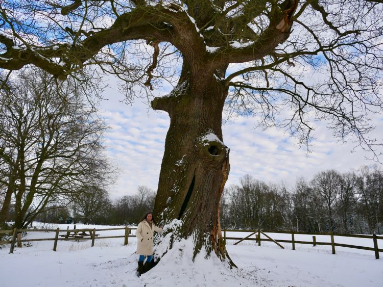 Barones Sophia (1964) wandelt vrijwel dagelijks met haar hondje Takkie langs de boom, die op een steenworp afstand staat van haar huis op landgoed Verwolde. 'De boom is familiebezit, maar ik zie het niet als mijn boom', vertelt ze als we op een winterse dag door de sneeuw naar de eik wandelen. 'Ik mag er een tijdje voor zorgen en dat vind ik heel fijn, want ik voel me heel erg betrokken bij de boom. In mijn familie is altijd met veel respect gesproken over deze oude eik.'