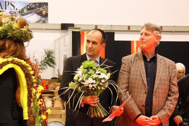 Egon Galinnis (directeur Messe Essen) spreekt de winnaar toe.