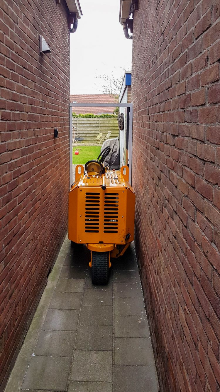 Het gebruik van diesel raakt steeds meer in ongenade. Dat deze stobbenfrees vanwege de milieueisen geen Stage V dieselmotor kreeg, maakt ons natuurlijk nieuwsgierig. Ronald Melse vertelt dat het om een duurzame industriële motor gaat, met directe injectie van de brandstof. 'Naast een lagere milieubelasting is zo'n direct injectiesysteem in het voordeel ten opzichte van een carburatiesysteem bij een benzinemotor. Met zo'n stobbenfrees draai je altijd vol gas. Een dieselmotor houdt het toerental bij zware belasting goed vast. Die heeft namelijk bij elk toerental een hoger koppel dan een traditionele benzinemotor. Een carburatiesysteem is daarvoor veel minder geschikt en houdt bij zware belasting het toerental niet vast. Bij een direct injectiesysteem manifesteert zich dit veel minder, mits dit elektronisch goed geregeld wordt. Degene die de dieselversie gewend is, zal hier waarschijnlijk wel iets van merken, al voelt de benzinemachine veel intuïtiever aan. De iets zwaardere benzinemotor in combinatie met de intuïtievere bediening zorgen voor minimaal dezelfde capaciteit als zijn voorganger. De beitelsnelheid blijft onveranderd: 28 meter per seconde. Deze machine heeft een maximaal zwenkbereik van 138 cm. Dat is in deze vermogensklasse ongekend groot. Je kunt hiermee dus ook relatief grote stobben frezen zonder de machine te verplaatsen. Dat is een groot pluspunt.'