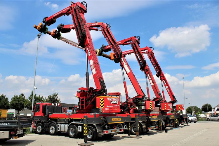 Dat brengt ons bij een stokpaardje van Weijtmans: 'Verreikers zijn ontworpen om te hijsen', zo vervolgt hij. 'Ga je daarmee bomen vellen en rooien, dan krijg je te maken met enorme torsiekrachten, die een hoge puntbelasting geven op alle onderdelen van je kraan en het chassis. De complete bouw moet dus oersterk zijn. Zo'n machine is namelijk zo sterk als de zwakste schakel. Dat geldt ook voor onze velkranen. Met de kennis die we uit onze ervaring hebben opgedaan, hebben we de machine bedacht en laten ontwikkelen en de afgelopen dertien jaar voortdurend verbeterd. Juist vanwege de torsiekrachten moesten we bijvoorbeeld sterkteberekeningen maken van de poten waarmee we de kraanwagen afstempelen. Zoals wij ze hebben laten construeren, zitten we op 200 procent van de veiligheidsmarge. De poten staan nu 8 m uit elkaar, terwijl 4 m ook veilig zou zijn in verband met de kantelkrachten op de gehele machine. Er mag met deze machines niets verkeerd gaan, want je hebt te maken met onvoorspelbare krachten en impulsen.' Weijtmans verduidelijkt: 'Wij produceren en verkopen deze zelfontwikkelde machines niet. We willen met onze machines alleen maar veiligheid en vakmanschap tot stand brengen in dit soort werk. Dat doen we al 100 jaar!'
