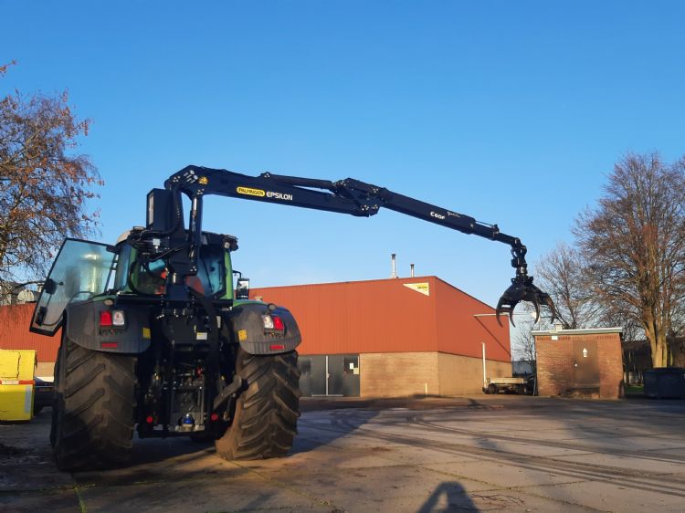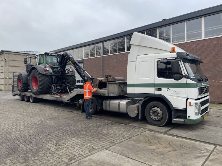 | | Inmiddels is de Fendt 828 met Palfinger-giek type C 60F86 aangekomen bij Verhart in Montfoort. |