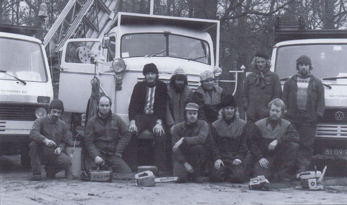 De eerste groepsfoto van de Nationale Bomenbank-ploeg, eind jaren 70
