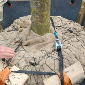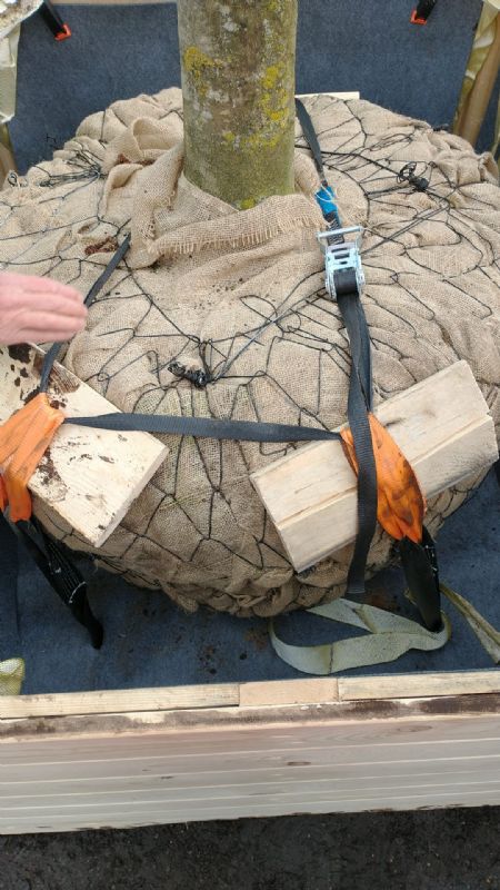'De bakken met bomen tot negen meter hoog wegen tot 1500 kilo, dus is een goede verankering van belang om de boom staande te houden in een bak'