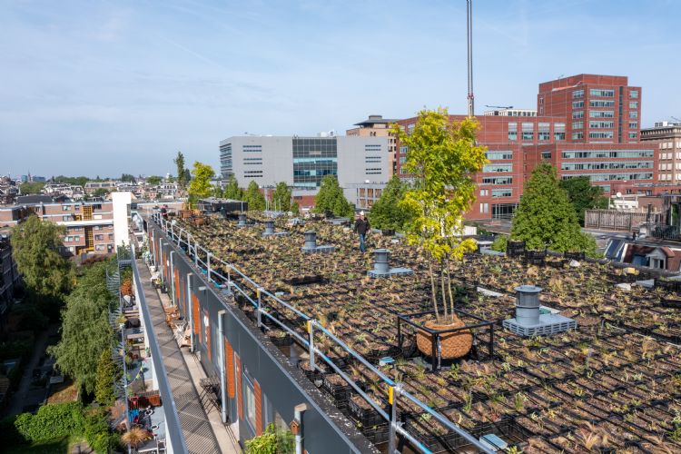 | Dak van een appartementencomplex aan de Camperlaan Amsterdam met innovatieve lichtgewicht bomen. Foto's: René Post, The Urban Jungle Project |