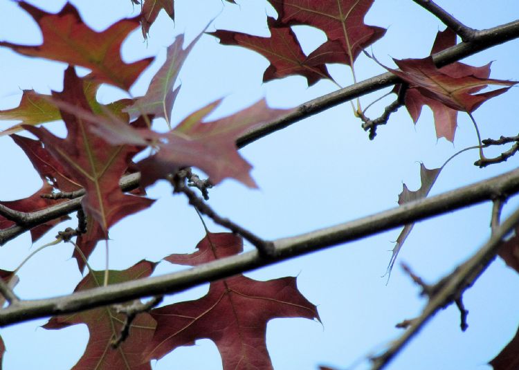 | Bladeren van moeraseik in herfstkleur |