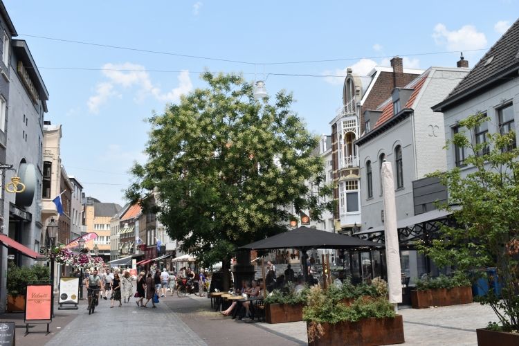 De pittoreske maar versteende Neerstraat in het hart van Roermond lijkt bijna onmogelijk om te vergroenen. Toch realiseerde de gemeente Roermond samen met Herman Vaessen een multifunctionele groeiplaats voor de honingboom.