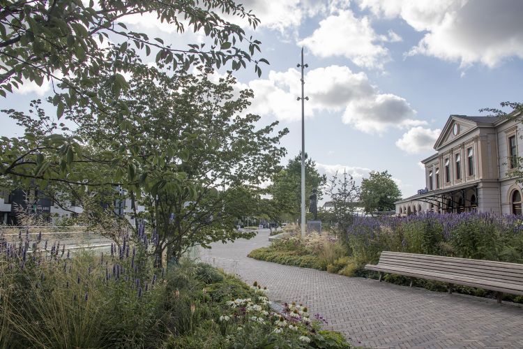 Het stationsplein van Zwolle heeft een metamorfose ondergaan. De voormalig versteende omgeving met veel asfalt is met veel groen omgevormd tot een plek die beter aansluit bij de verwachtingen en eisen van deze tijd.