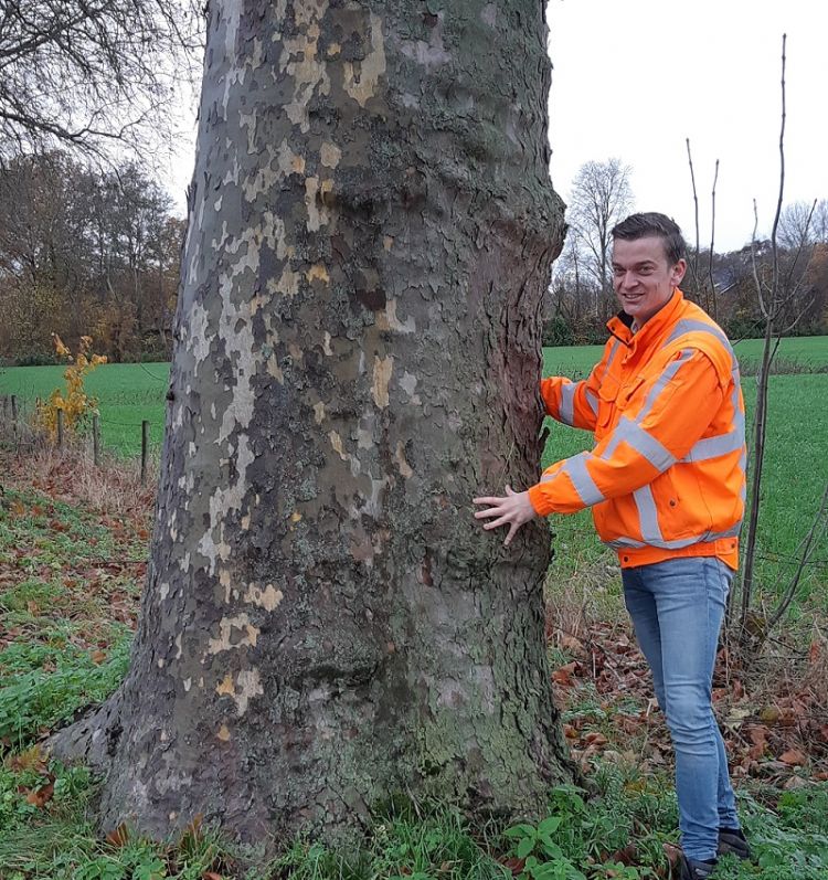 | Martijn Klompenhouwer bij een van de monumentale platanen langs de Van Heemstraweg |
