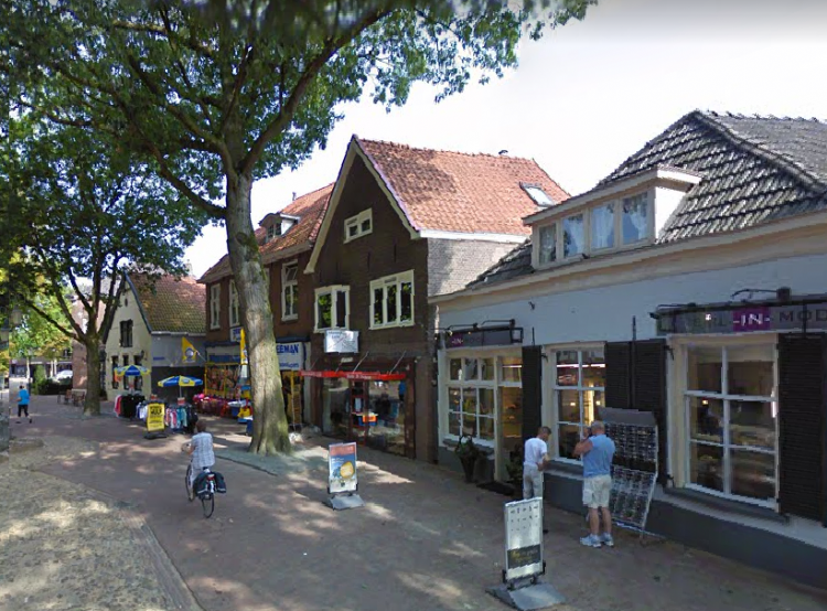 | De schoenmakerij met voor de deur de mooie maar inmiddels ook hinderlijke eik (foto 2021) |