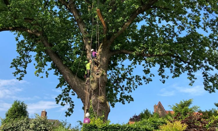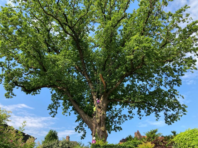 Vrijdag 9 juni was een bijzondere dag: de eerste boom uit de top 5 van de Nationale Bomen Top 50 werd gesnoeid door het NBB-Groep Klimteam. Deze oudste Arnhemse eik staat in een privétuin.