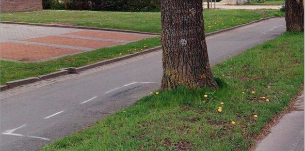 | | Markering van de wortelzone op het asfalt |