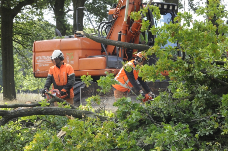Bomen rooien is, zo maakt hij duidelijk, naast dienstverlening ook het verzamelen van waardevol materiaal. De verdiensten die dit laatste oplevert, verschillen per project. Maar 'gemiddeld' haalt Weijtmans naar zijn zeggen altijd wel een aanzienlijk deel van de omzet binnen door de verkoop van hout en snippers. 'Voor bossen betalen wij de opdrachtgever van een klus. Bij een boom in een stedelijke omgeving zijn onze kosten hoger. Wellicht moeten brieven worden bezorgd bij de bewoners, moeten er proefsleuven worden gemaakt om te kijken wat er in de grond zit, zijn er verkeersregelaars nodig en moet er een telescoopkraan worden gebruikt. Toch wordt gemiddeld veertig procent van de kosten betaald uit de opbrengst van het materiaal. Voor wie deze opbrengst is, hangt af van de opdrachtgever. De ene gemeente verkoopt het bijvoorbeeld liever zelf; voor een andere nemen wij het mee.'