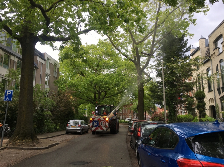 | Bestrijding eikenprocessierups met Xentari in gemeente Nijmegen. Archieffoto: Boomzorg. |