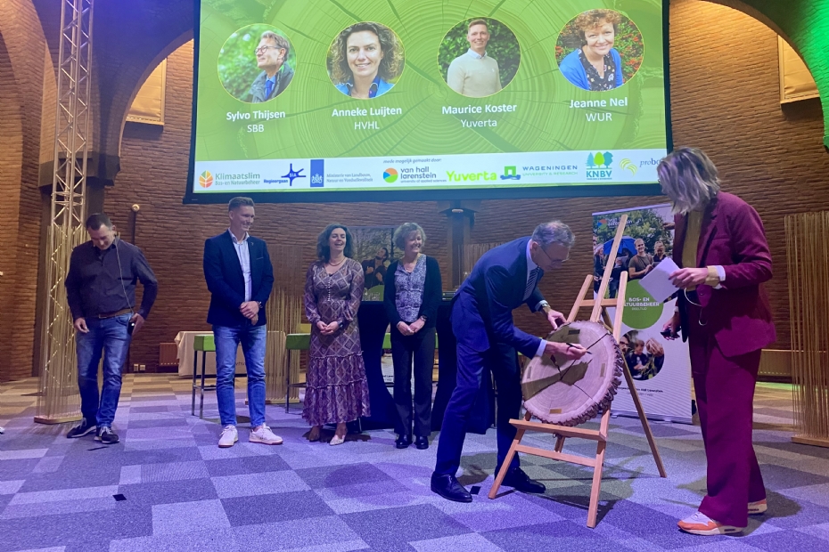 Ondertekening van de samenwerking door Sylvo Thijsen, Staatsbosbeheer