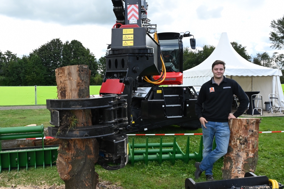 Beursprimeur GTH: Zero-emissie zagen met de zaaggrijper 711T op een elektrische verreiker van Manitou