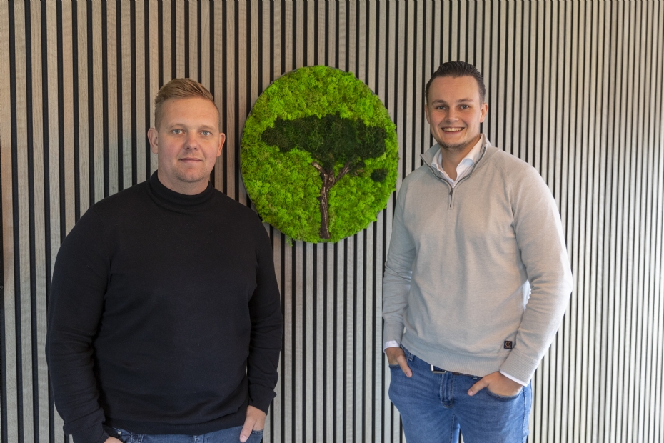 | Timo van der Bijl (l) van Pendula Boomzorg en Jesse Roozeboom van Become-IT |