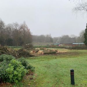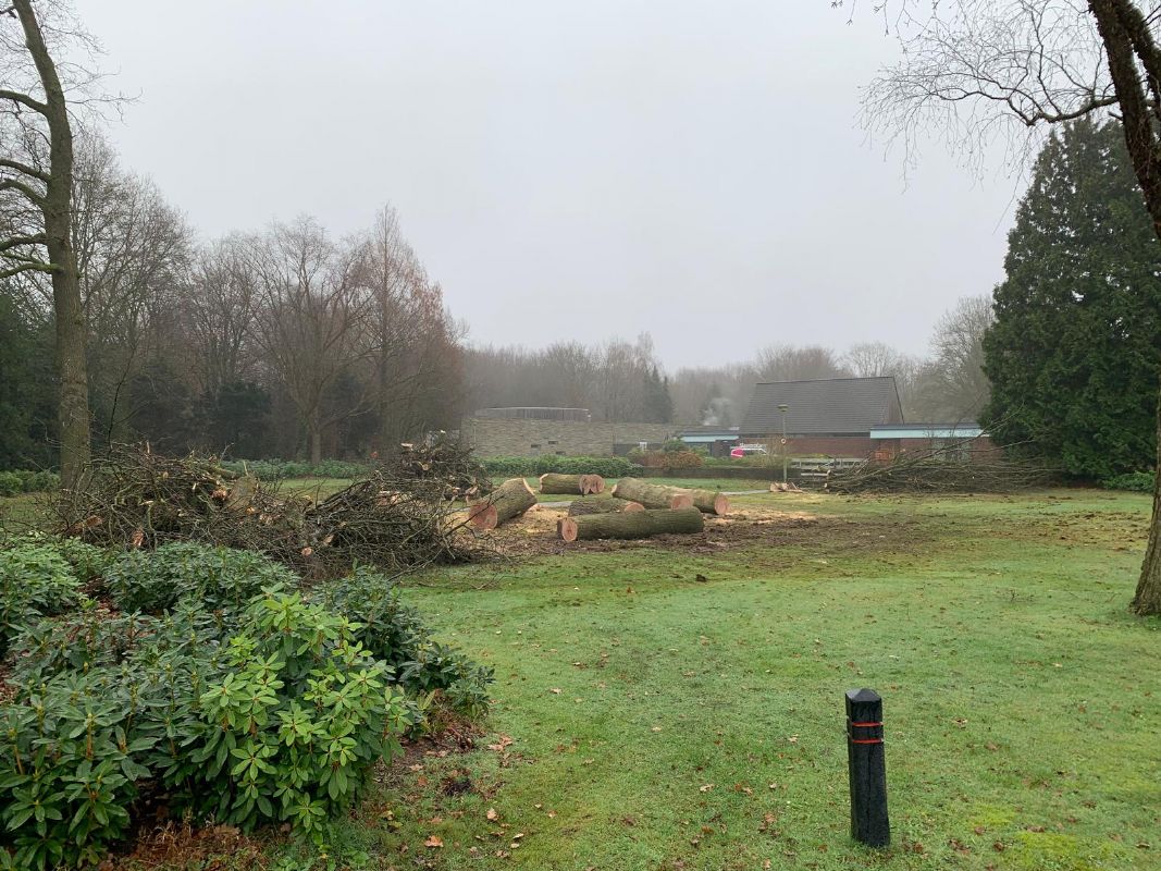 Een week later: de gekapte bomen bij de entree van Slangenburg