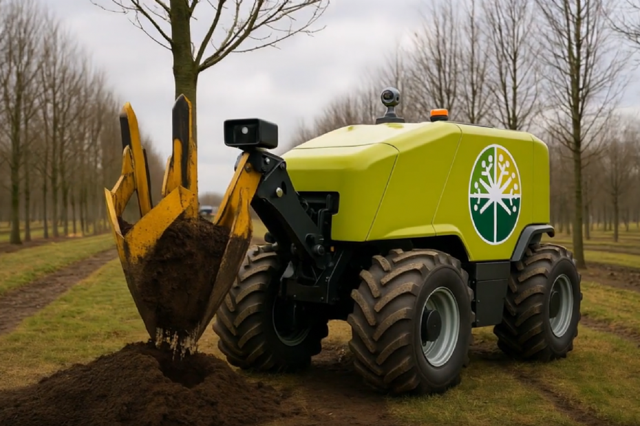 De boomkweker schrijft op LinkedIn: 'Mechanisatie speelt al jarenlang een grote rol op onze kwekerij. We ontwikkelen al jaren zelf machines die het werk op het veld makkelijker maken. Maar met onze nieuwste innovatie gaan we een stap verder: volledig autonoom bomen rooien. Vandaag testen we deze zelfontwikkelde machine in het veld. De robot ontvangt digitaal zijn instructies, navigeert zelfstandig door het perceel en rooit de geselecteerde bomen.'