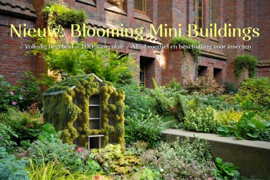 Groenvoorziener Blooming Buildings lanceerde speciaal op 1 april 'Blooming Mini Buildings'. Een soort super luxueze insectenhotels van mycelium, olifantengras en koeienmest. Die dan ook vanzelf weer kan worden opgenomen door de natuur. Klinkt leuk? Helaas ook een 1 april grap. De groenvoorziener verklaard: 'Wij zijn niet zo van de insectenhotels en wormenbakken. In plaats daarvan kun je veel beter de real deal gebruiken om je bedrijfstuin of gevelborder te verfraaien: echte planten.'