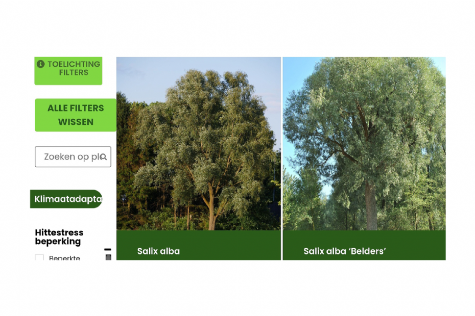 Ook het Duitse Citree.de-boombeslismodel levert als online bomenwijzer instant zoekresultaten. Citree.de is ontwikkeld door de Technische Universiteit Dresden en is bedoeld om stadsplanners, maar ook leken te helpen bij het selecteren van geschikte bomen voor de stedelijke omgeving. Het model maakt gebruik van uitgebreide databanken die een breed scala aan boom- en struiksoorten omvatten, speciaal geselecteerd voor hun geschiktheid in verschillende klimaat- en stadsomstandigheden. Citree is in Nederland nagenoeg onbekend, maar dat is niet terecht. De gebruiker kan na het ingeven van een specifieke locatie zoeken op parameters als snoeien, verkeersgebieden, dichtbebouwde en weinig bebouwde stedelijke gebieden, industriële en commerciële gebieden, groene daken en containerplanten, maar ook parken, tuinen, begraafplaatsen en herontwikkelingsgebieden. De database biedt informatie over meer dan 360 soorten houtige gewassen en wordt regelmatig bijgewerkt om de meest recente en relevante informatie te bieden. Het boombeslismodel omvat criteria zoals hittebestendigheid, droogtetolerantie en visuele aantrekkelijkheid. Gebruikers kunnen ook zoeken op criteria als bodemtype. Citree is niet meteen heel makkelijk. Je moet er even voor gaan zitten of goede instructies krijgen, maar met een half uurtje oefenen en uitproberen kom je heel ver.