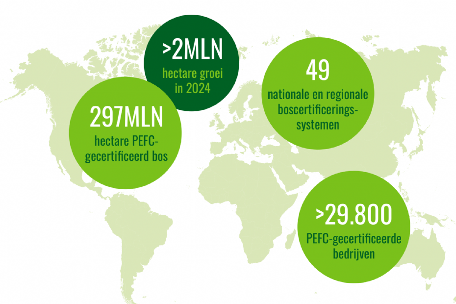 Het wereldwijde areaal aan PEFC-gecertificeerde bossen is in 2024 gegroeid met ruim 2,2 miljoen hectare. Dat blijkt uit het Impact Rapport van PEFC, het grootste internationale keurmerk voor duurzaam bosbeheer. In totaal is nu bijna 300 miljoen hectare gecertificeerd, verspreid over 49 landen. Vorig jaar waren dat er nog 44.