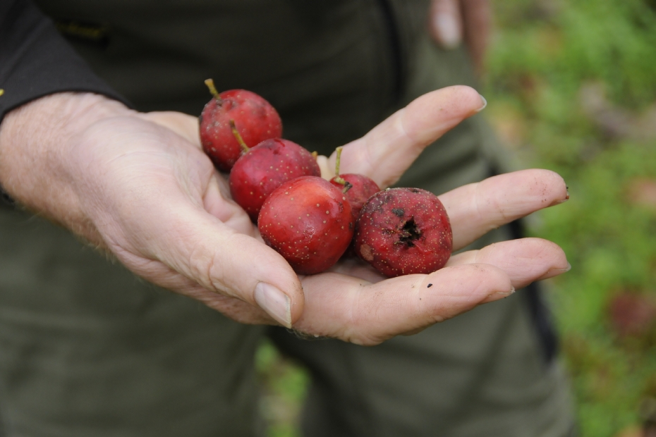 | De meeste vruchten van de meidoorn zijn klein, maar er zijn ook uitzonderingen. Hier: Crataegus pinnatifida Big Ball |