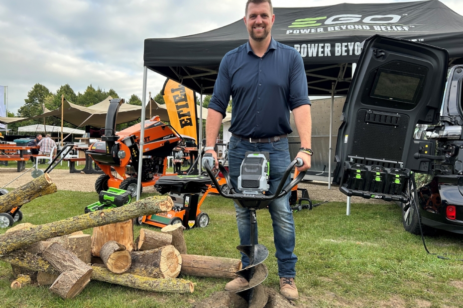 Op de stand van Stihl legt accountmanager Tommy Nagtegaal uit wat de nieuwste ontwikkelingen zijn op het gebied van accumachines. Aankomend jaar bestaat Stihl 100 jaar en komen er weer voldoende nieuwe producten aan.