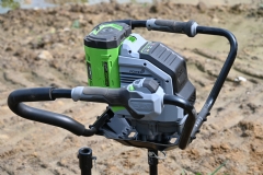 Bij Poel op de stand staan allemaal mooie praktische toepassingen met Stihl machines voorop. Die niet per se van Stihl zijn. Zo hier op de foto een Geotrencher. Een doorslijper die aangepast is naar een sleuvenfrees.