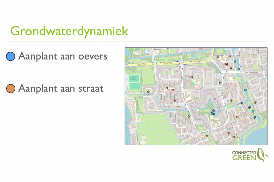 'Voor het zoneringsadvies gebruiken we GIS-data en eventueel extra gegevens die door een gemeente worden aangeleverd,' vervolgt hij. 'Daaruit halen we onder meer informatie over bodemtype en de mate van verharding rondom bomen. Je ziet bijvoorbeeld dat veel binnensteden op hogere zandgronden zijn gebouwd, maar de afgelopen decennia is er ook weer veel op klei gebouwd. Aanwezigheid van een sloot of meertje heeft weer invloed op de grondwaterdynamiek en grondwaterstand. Verder houden we in het zoneringsadvies rekening met het microklimaat en type groen. Dat kan gaan om boomsoort, leeftijd, worteldiepte en/of soorten die droogte of juist nattigheid verdragen. Verder is belangrijk welke beheersvorm een gemeente wil toepassen.'