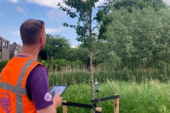 Om de nazorg zo duurzaam mogelijk te doen heeft Quercus vochtsensoren van Smartcity-IoT geplaatst op zorgvuldig gekozen locaties binnen het projectgebied. Bij bomen op lastigere plekken, zoals bij verharding of op taluds, wordt er op meerdere dieptes rondom de kluit gemeten. De sensoren geven inzicht in zowel de bodemvochtigheid als de temperatuur van de bodem. Op basis van deze gegevens kunnen ze bepalen of en wanneer water nodig is. Niet op gevoel, maar op basis van actuele metingen.