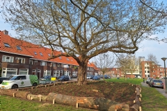 Dit is uitgevoerd onder toeziend oog van Cas, die afgelopen september heeft deelgenomen aan het eerste VetCert-examen voor uitvoerende boomverzorgers, door Sjors van Meegeren en Luc van Rooij. Een leuk feitje: de boom staat vermeld in een boek dat Han van Meegeren, de vader van Sjors, in 2014 heeft uitgebracht over monumentale en opmerkelijke bomen in Tilburg genaamd Van acacia tot zilverlinde. Op de foto in het boek staan ondergetekende en Cas die de boom toen net, vanuit van Helvoirt Groenprojecten, aan het snoeien waren. De boom had in 2014 een stamomtrek van 4,63 meter en er waren al vruchtlichamen van een ganoderma op de stam aanwezig. Desondanks heeft de boom nog steeds een goede conditie en is er met de parochie besproken in meerdere jaren de kroon steeds verder terug te nemen en op deze manier de boom duurzaam veilig te behouden.