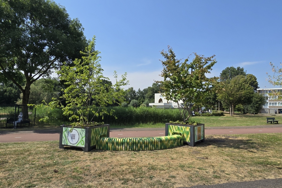 De bomen zijn opgekweekt op een reststroom van riool-, kolk-, gemaal- en veegvuil (RKGV). De bakken zijn aangekleed met kindertekeningen en poëzie van stadsdichter Ivo Weterings. Een project waar circulariteit, educatie en vergroening samenkomen in de wijk.