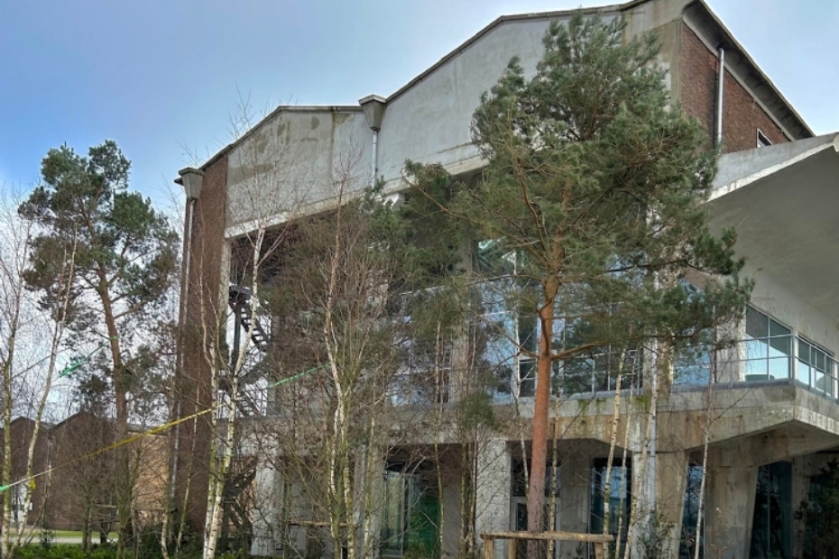 Hierdoor ontstaat een beeld dat het gebouw opgenomen is in beplanting die er al jarenlang staat, net zoals het gebouw duidelijk zichtbare sporen van jarenlang gebruik vertoond. Mede daarom is ervoor gekozen om hele grote maten bomen toe te passen.