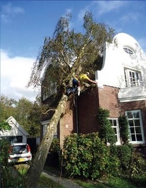 Door de grote najaarsstorm van 28 oktober jl. hebben bedrijven meer aanvragen gehad voor het opruimen van stormschades. Zo kreeg ook Tarzan Boomspecialisten uit Amstelveen veel meer aanvragen door deze najaarsstorm dan anders. Eén boom was daadwerkelijk op een huis gevallen. Gelukkig bleek hier ook weer dat een boom niet zomaar 'door' een huis heen valt. Na het verwijderen van de boom bleek er geen enkele schade aan het huis te zijn. De grote hoeveelheid beschadigde bomen verbaasde Frans van Vugt - Schmitz. 'Normaal gesproken krijgen we na een storm wel één of twee oproepen voor het opruimen van de boom of takken, maar na deze storm zijn we echt 3 weken bezig geweest om gevallen bomen of takken op te ruimen en bomen te snoeien. Bij een aantal bomen hebben we gezien dat, hoewel de bomen nog overeind stonden, de wortelkluiten los waren gekomen. Deze bomen zijn hierdoor ernstig verzwakt. We hebben deze bomen zwaar gesnoeid, of gekapt'