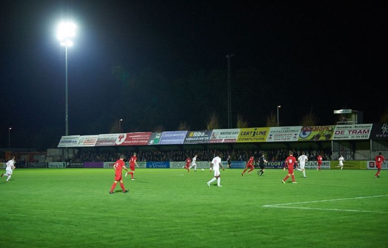 Het is voor het eerst dat de voetbalvereniging uit Hoogstraten uitkomt in de Belgacom League, de Belgische Tweede Klasse. De promotie betekende daarom dat het stadion grondig moest worden aangepakt. 'Zo moesten er nieuwe nooduitgangen en veiligere staantribunes worden gerealiseerd, werden we geacht extra camera's te plaatsen en veiligheidsmedewerkers in te zetten en eiste de politie en de EHBO dat ze hun eigen ruimtes in het stadion kregen,'zegt secretaris Fons Van de Broeck van de vereniging. Behalve verbeterde veiligheidsmaatregelen, werd de vereniging ook geacht de kwaliteit van de lichtinstallatie te verbeteren. 'De 200 Lux die de lampen gaven werd onvoldoende geacht. Die moest in twee stappen worden verhoogd naar tenminste 400 Lux. Op termijn zal dat verder worden verhoogd naar 800 Lux,' licht Stef van Erck namens de vereniging toe. De verbetering van de verlichting was onontkoombaar. De Belgacom League wordt regelmatig op televisie uitgezonden en om de registratie goed te kunnen verzorgen was een betere lichtkwaliteit noodzakelijk. Maar die eis van de bond stelde de vereniging voor problemen. 'De leverancier van de oorspronkelijke installatie was inmiddels overgenomen en de nieuwe eigenaar had weinig kennis van de situatie in en rondom het stadion. Bovendien stelde de techniek ons voor een aantal eperkingen,' vervolgd Van Erck. Zo bleek dat de bestaande elektriciteitsvoorziening niet de capaciteit had om alle lampen te voeden, zou het aantal conventionele lampen worden uitgebreid. Kwaliteit voorop VV Hoogstraten koos daarom voor LED lampen. 'Rondom het veld zijn nu 36 LED armaturen geplaatst die de vereiste 400 Lux lichtkwaliteit leveren,' zegt Rene Eekhoudt van lichtspecialist Oostendorp BVBA. 'De lampen hangen in lampenrekken op 24 meter hoogte en halen klasse II qua lichtniveau. Door te kiezen voor LED lampen gebruikt de vereniging nu zo'n 40% minder energie dan voorheen waardoor investeringen in een nieuwe hoogspanningscabine konden uitblijven. Dat scheelde aanzienlijk in de financiën.' Volgens Stef van Erck functioneert de installatie naar volle tevredenheid. 'Toen wij onze zoektocht naar geschikte lampen voor ons stadion begonnen merkte we dat LED verlichting voor veel mensen nog een onontgonnen terrein was, waar zelfs veel installateurs niet altijd de antwoorden op vragen wisten. We hebben ons daarom eerst zelf uitvoerig verdiept voordat we tot deze keuze kwamen. Daarom zijn we beter in staat zelf in te schatten hoe goed de performance eigenlijk is.' Volgens Eekhoudt onderscheiden de LED lampen van AAA LUX zich door de zuivere kwaliteit en gelijke verspreiding van het licht. 'De producent van deze lampen heeft alle techniek en kennis qua LED verlichting in eigen huis. Zo worden zowel de aansturing, behuizing, lampen als lenzen door de LED Expert uit Eindhoven zelf ontwikkeld. De armaturen zijn ontwikkeld en getest om tenminste 25 000 uur mee te gaan. Andere leveranciers zijn qua kwaliteit en duurzaamheid van al die componenten afhankelijk van verschillende leveranciers en dat kan de kwaliteit van de verlichting aantasten.' Waardevolle investering Eekhoudt merkt op dat de keuze voor LED lampen een grotere investering vereist dan aanschaf van conventionele stadionlampen. 'Maar daar staat tegenover dat de LED lampen minder energie verbruiken en veel minder onderhoud vergen.' De leverancier rekent voor dat de totale installatie bij VV Hoogstrtaten zo'n EUR 90.000 heeft gekost. Upgrading met conventionele lampen zou, qua investering, 'slechts' EUR 60.000 hebben gekost', zo schat hij. 'In de berekening is echter niet meegenomen dat de vereniging zou hebben moeten investeren in een hoogspanningscabine wanneer het had gekozen voor conventionele verlichting. Dan was die investering wel nodig geweest en zou het hele project zo'n EUR 160.000 tot EUR 200.000 duurder zijn geweest.' Ondanks de aanzienlijke investering heeft VV Hoogstraten niet echt een terugverdientijd vastgesteld', zegt Stef van Erck. 'De lampen verlichten ons stadionveld. Dat veld wordt niet zo vaak gebruikt als andere velden waardoor de terugverdientijd veel langer is dan bij andere velden. Maar eigenlijk is de vraag ook irrelevant. We waren verplicht om voldoende licht te hebben en we wilde de beste kwaliteit. Die hebben we nu gekregen.' De aanvullende voordelen van LED verlichting spraken VV Hoogstraten echter ook enorm aan. Zo werden de lampen geplaatst zonder andere storende werkzaamheden in de omgeving. "Er was geen extra graafwerk nodig voor de installatie. De lampen hebben allemaal hun eigen antenne en worden draadloos aangestuurd. En wanneer er eventueel extra lampen worden bijgeplaatst dan is dat slechts een kwestie van plaatsen en afstemmen op de draadloze aansturing.' Van Erck vermoedt ook dat de vereniging aanvullende besparing kan halen uit de duurzaamheid en kwaliteit van de lampen. 'Het is niet langer nodig om eens in de zoveel tijd iemand de mast in te sturen om de lamp te vervangen. Deze lampen zijn onderhoudsarm.' Bijkomend voordeel De installatie van LED lampen in het stadion heeft, volgens Van Erck, een aanvullend voordeel voor de vereniging. 'Het stadionveld wordt ook gebruikt door ons Tweede team en het Eerste Dameselftal. De laatste spelen op vrijdagavond. Wanneer we hadden gekozen voor conventionele verlichting dan zouden we niet in staat zijn geweest om zowel het stadionveld, als de overige velden tegelijkertijd te verlichten. We zouden, simpelweg, niet voldoende elektriciteitscapaciteit hebben gehad. Dat was voor ons echter onacceptabel omdat vrijdagavond juist de avond is waarop de meeste elftallen trainen.' Zelfs met alle velden bezet, heeft VV Hoogstraten nu echter nog voldoende energie over. 'De LED lampen hoeven niet perse op volle sterkte te branden. Zelfs wanneer we ze met 60% dimmen, leveren ze nog altijd 250 Lux. Dat is meer dan voorheen,' stelt Van Erck. Als nieuwkomer in de Belgacom League weet VV Hoogstraten dat alle ogen op hen gericht zullen zijn dit seizoen. Dankzij de LED verl