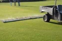 Intell Sports uit Doorn introduceert de Greensweeper voor golfbanen. De Greensweeper is opgebouwd uit een 6 m brede en 1 m lange gecoate polyester mat die geen vocht opneemt. In de voorzijde van de mat zit een ingeweven kunststof pees, die in het profiel van de driedelige trekboom geschoven wordt en daarna wordt opgespannen. Dankzij stevige rvs scharnieren zijn de drie delen inklapbaar en geven ze het geheel de nodige flexibiliteit om de contouren van de ondulatie op de green te volgen. Het geheel weegt 14 kg.